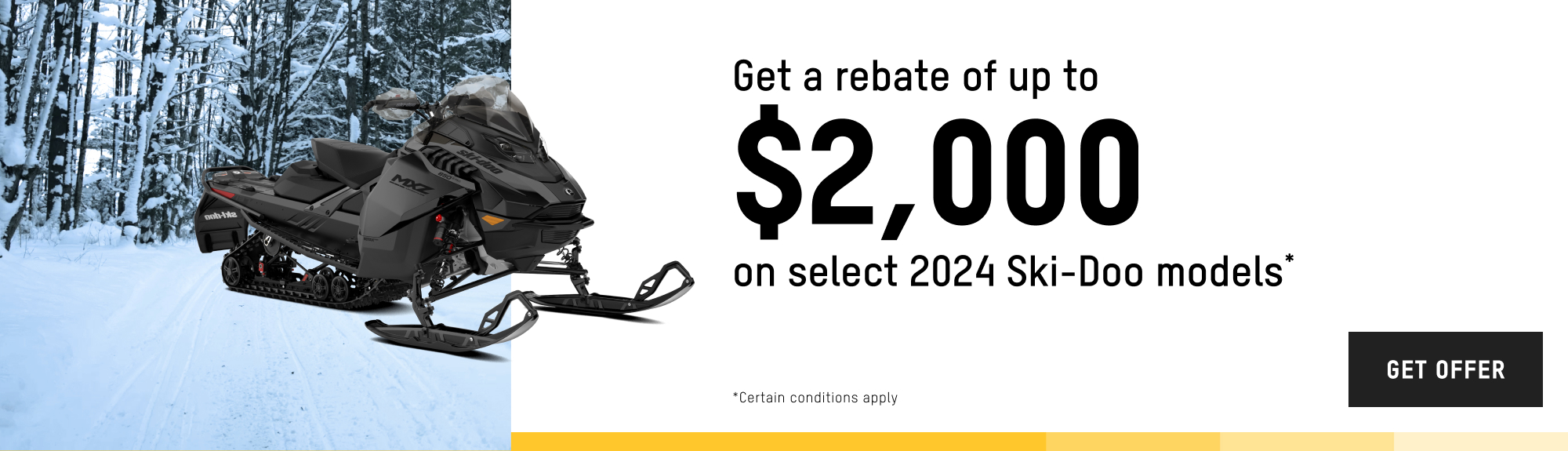 Get a rebate up to $2,000 on Full-Sized 2024 Ski-Doo and Lynx models