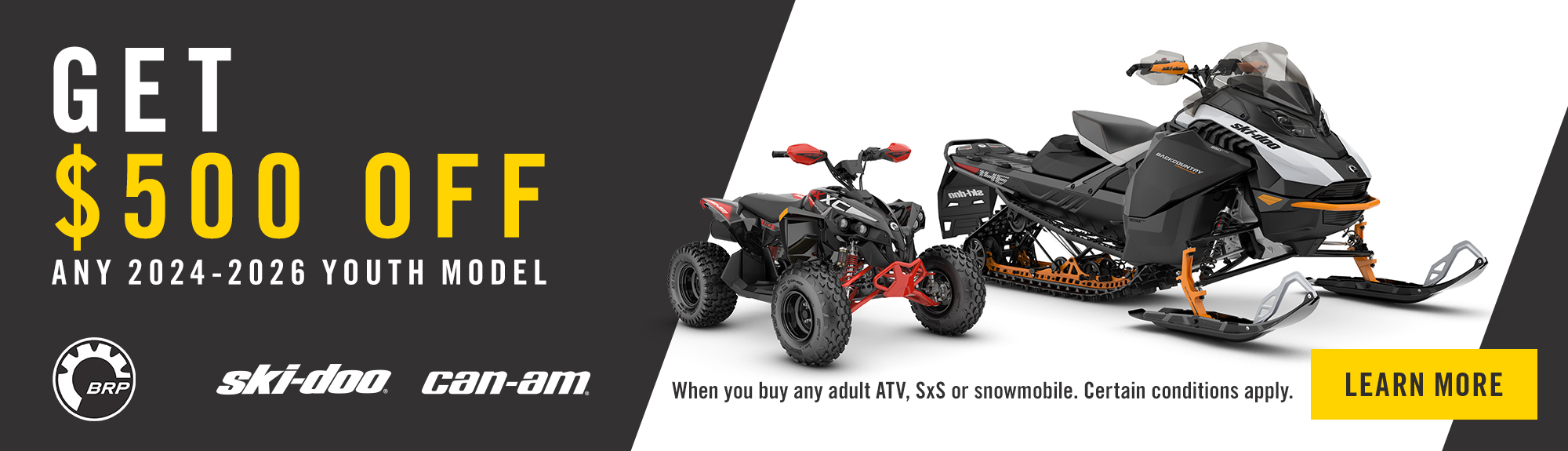 Buy an adult snowmobile or off-road vehicle and get $500 off a Youth vehicle